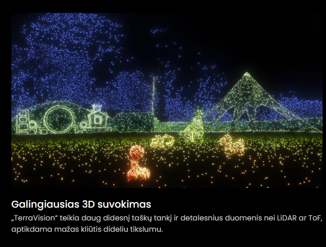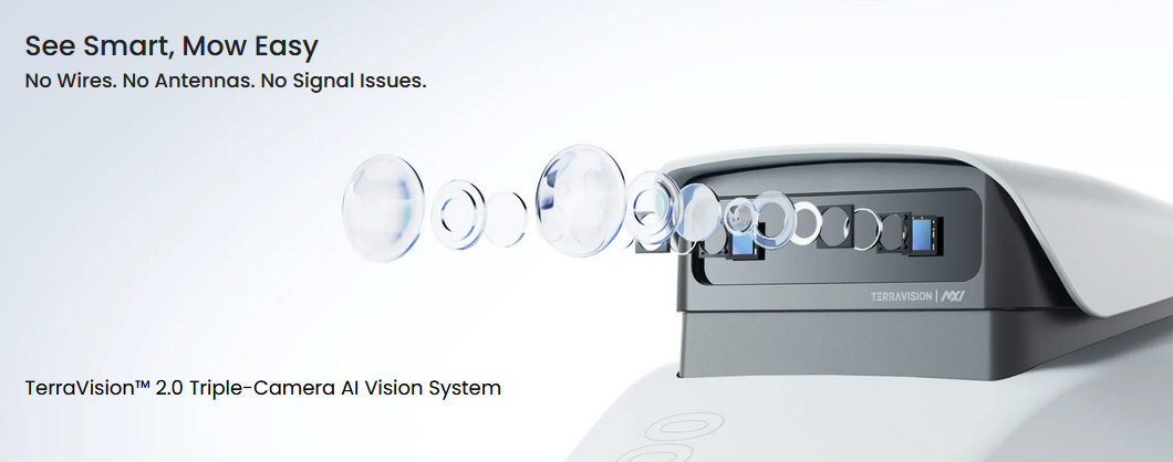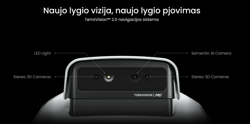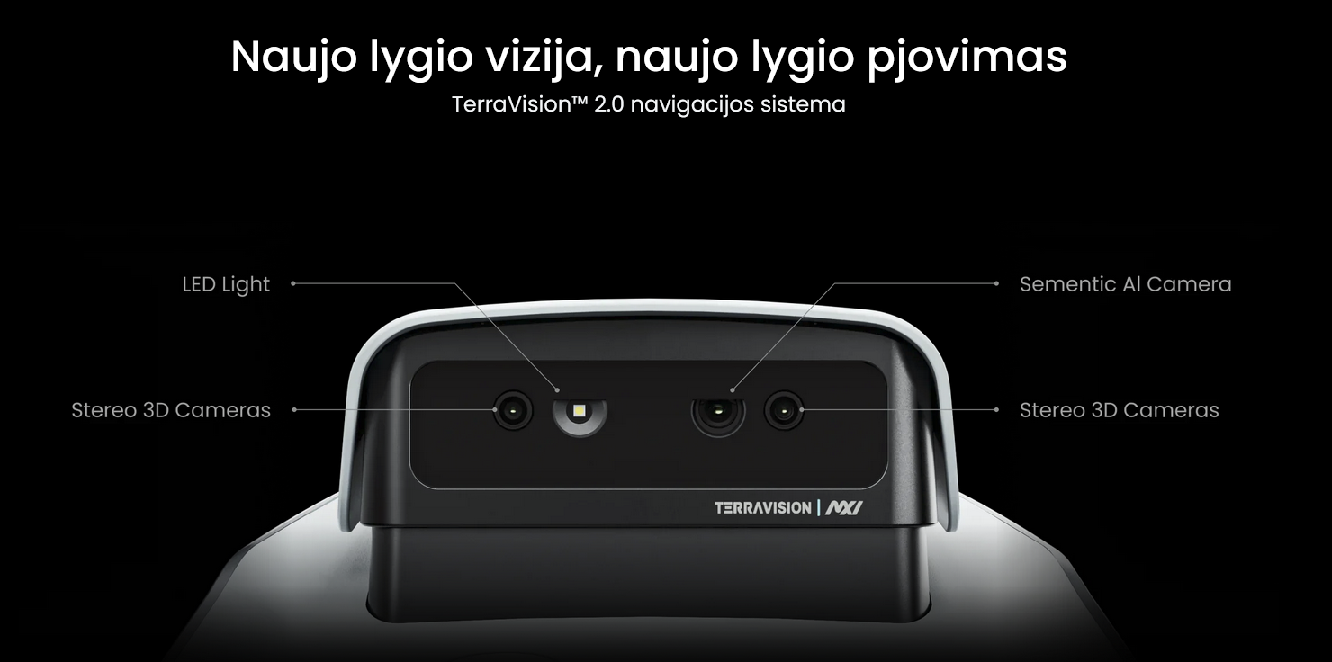 Navigacijos technologijos: „TerraVision™ 2.0“ trijų kamerų + dirbtinio intelekto ( DI ) vaizdo apdorojimas