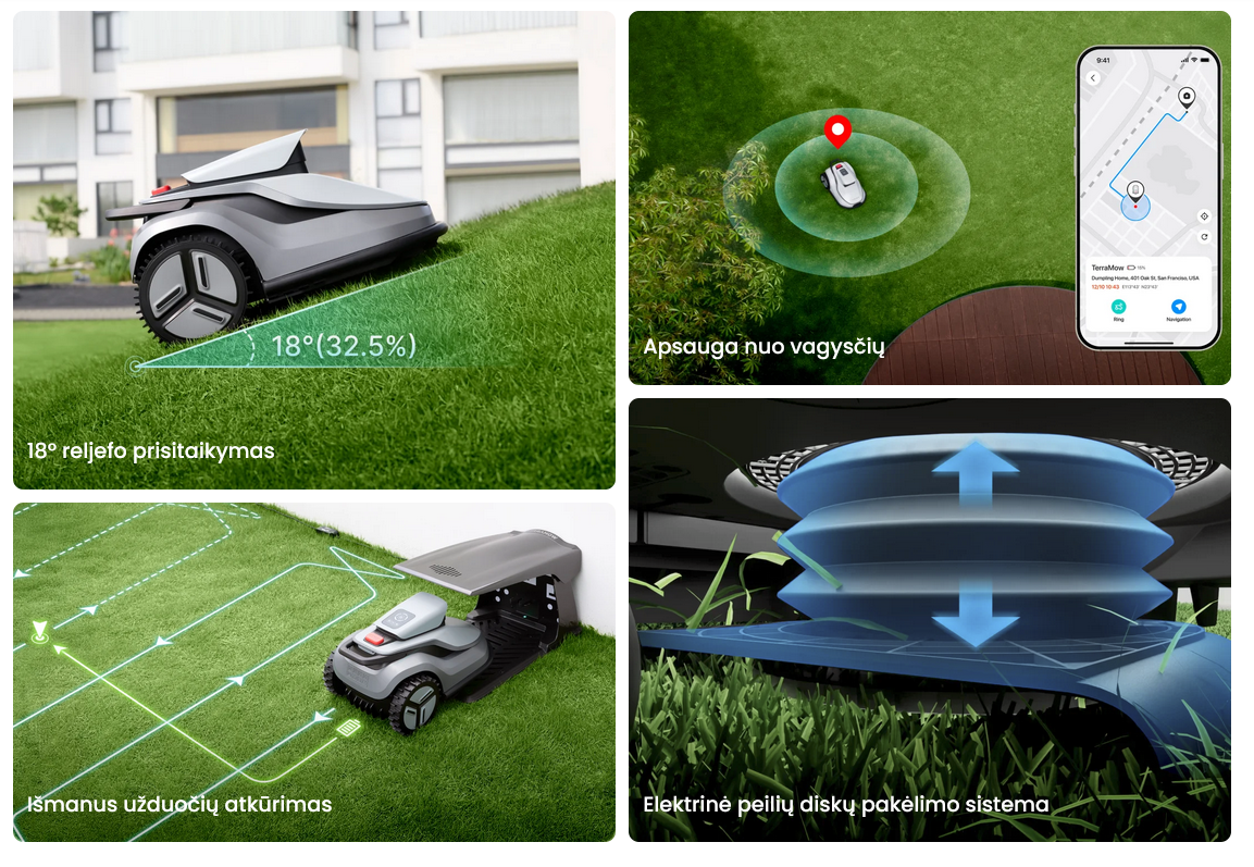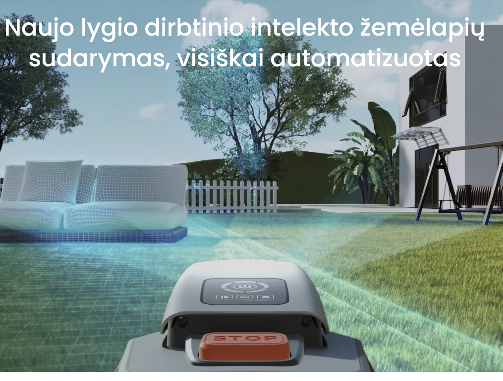 Tegul robotas mokosi – jis analizuoja, įsimena ir naviguoja be klaidų. Tieiog paspauskite mygtuką ir robotas pats apžiūrės sklypa ir sudarys žemėlapį.