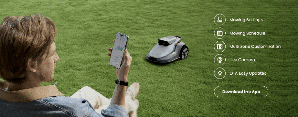 Paspauskite. Susiekite. Pjaukite. Valdykite tvarkaraščius, zonas ir atnaujinimus tiesiai per programėlę. Robotas žemėlapį, nustatymus ir grafikus saugo atmintyje. Wi-Fi reikalingas tik stotelėje atnaujinimams.