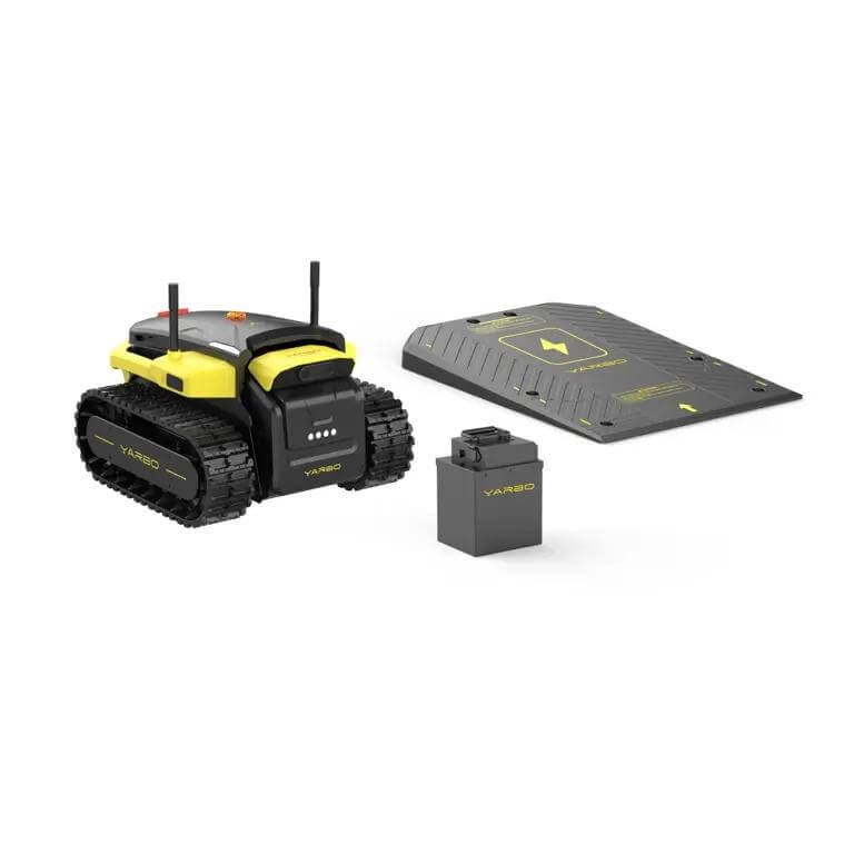 Yarbo Core komplektą sudaro pagrindinė važiuoklė (robotas), įkrovimo stotelė, baterija ir nuotolinio valdymo pultas.